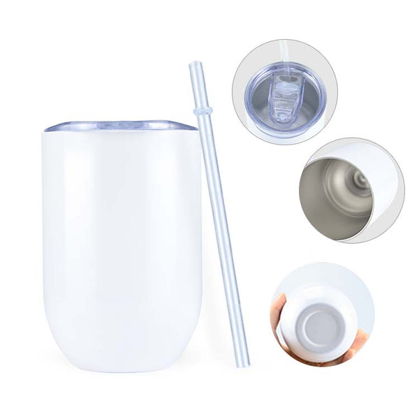 Create personalized wine tumblers for every occasion with these 12oz. stainless steel sublimation wine tumblers! These tumblers feature a stainless steel inner tank too keep your beverages cool and warm for hours. They're encased in a polymer outer wrap for rich, full color transfers and a durable, premium feel.