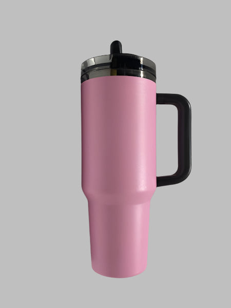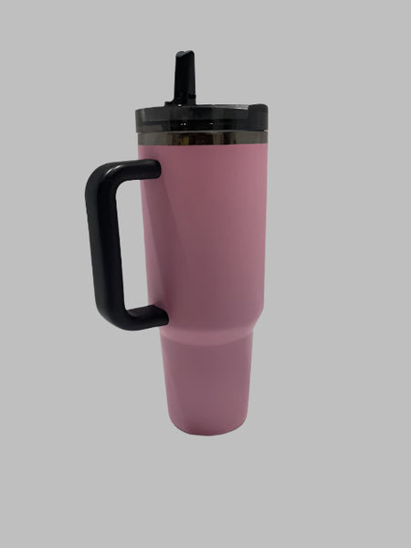 This 40oz Pink Mega Travel Tumbler is the perfect blend of style and function! Featuring a sleek pink finish, black handle, and matching black lid, this tumbler is designed for those on the go. Its generous 40oz capacity ensures you stay hydrated throughout the day, whether you're commuting, at the gym, or running errands.