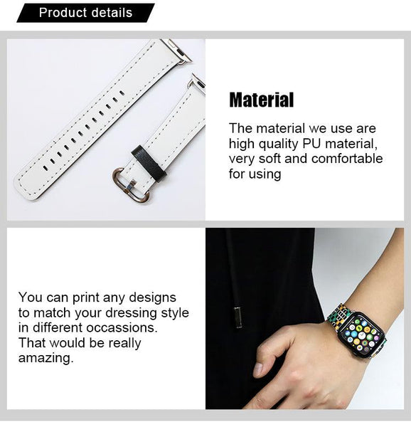 Sublimation Blank Watch Band for 38/40mm smartwatches. White. Made of polyester leather. Sublimation areas: .86” x 2.95” and .86” x 4.52”. Make any watch band more unique with personalized artwork. Ideal gift for any occasion. Wholesale for boutiques, gifts shops, and jewelry shops. We have had amazing success attaching these to Samsung, Fitbit, and Apple® watches. Also available in 42/44mm (AWB4244). These are designed to be fashion bands and not intended to be used as sports bands.